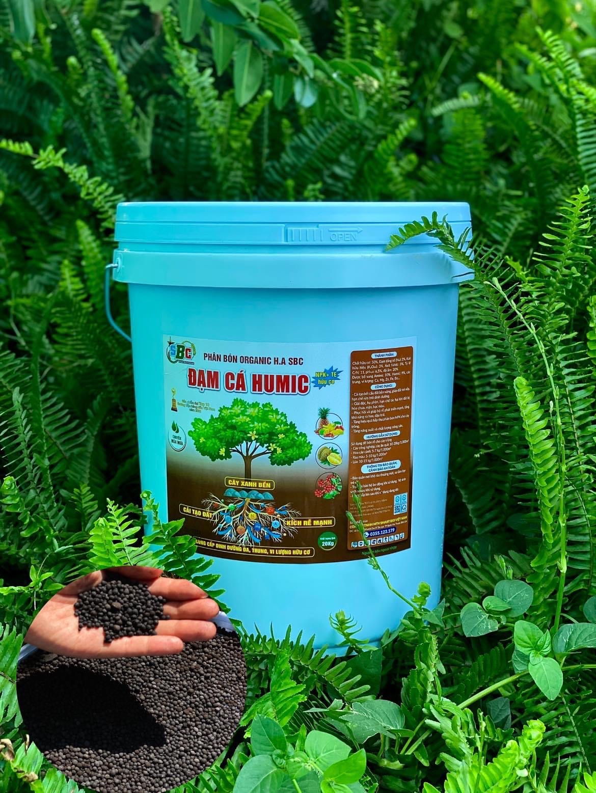 Đạm cá Humic dạng viên dùng trong mùa mưa là sự kết hợp giữa dịch đạm cá cô đặc SBC + humic + chất hữu cơ thô cùng hàng tỉ vi sinh vật có lợi. Đạm cá Humic được sản xuất dạng dạng viên, là sản phẩm thay thế đạm cá cô đặc dạng dịch dùng trong mùa mưa, giúp tiết kiệm nước, tiết kiệm công lao động và đặc biệt giúp bổ sung hàm lượng mùn trong đất.